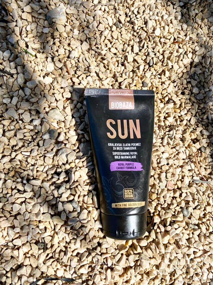 - Royal Marmeladă bronzantă cu particule de aur – BIOBAZA conține morcov violet, cea mai puternică sursă de caroten pentru un bronz intens